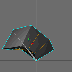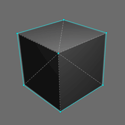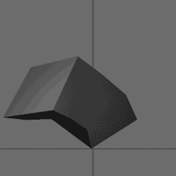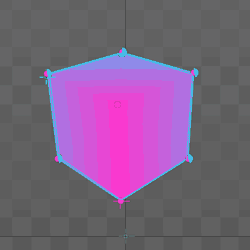 Here is the same cube mesh again, but with weights set so that the cube pivots around the axis between the vertices in the left and right corners:
