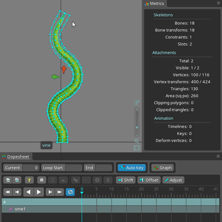 This whole post is about weights, but what about deform keys? Many new Spine users are tempted to use deform keys to deform their meshes. Deform keys are powerful and have their place, but in most cases using weights is superior for a number of reasons.