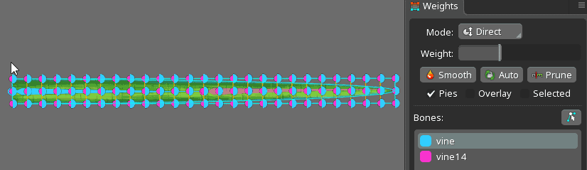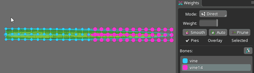 A similar result can be achieved by weighting a mesh with fewer vertices, then later adding more vertices to the mesh. Spine will automatically calculate the weights for you based on the surrounding vertices.