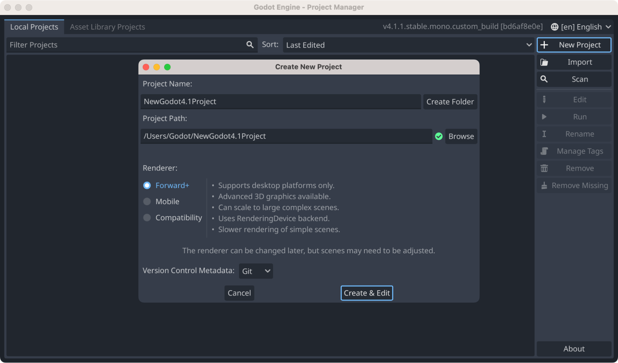 First, create a new Godot project using the downloaded Godot editor binary that has C# support.