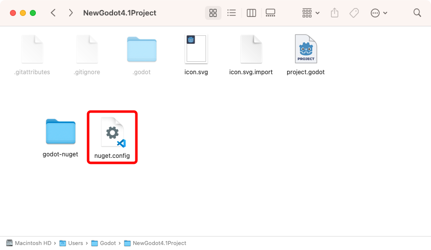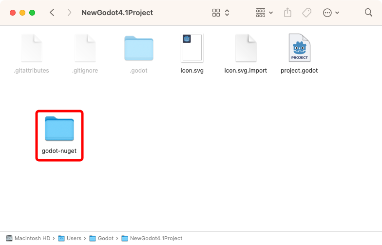 Close Godot and open your project folder. In the root directory, create a new folder called godot-nuget.
