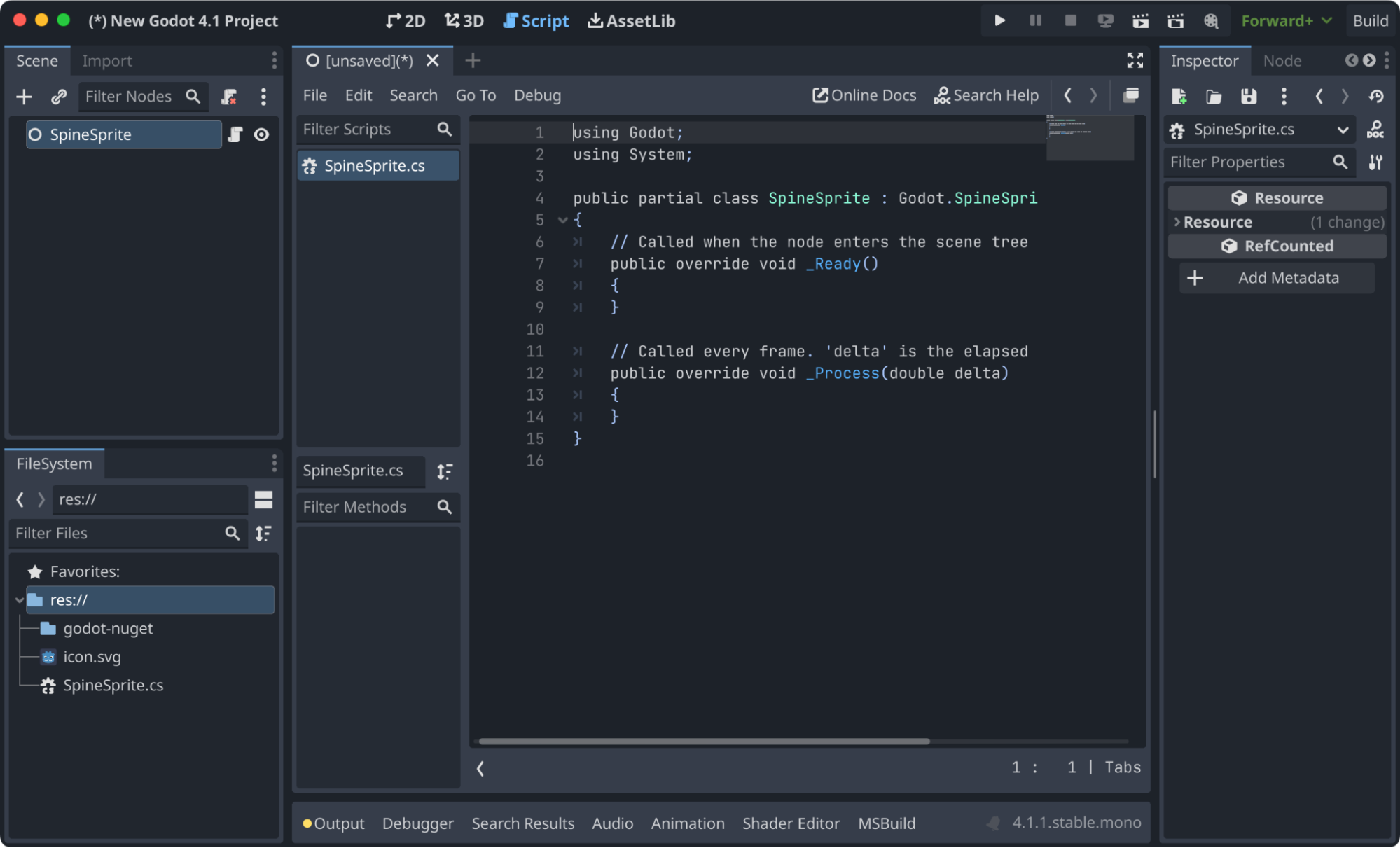 You can now open your project in Godot and use the Godot and spine-godot C# APIs instead of GDScript!