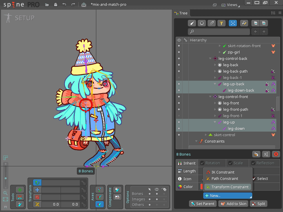 We can now add the small-hips and small-limbs constraint to a skin, which means the constraints will only be applied when that skin is active.
