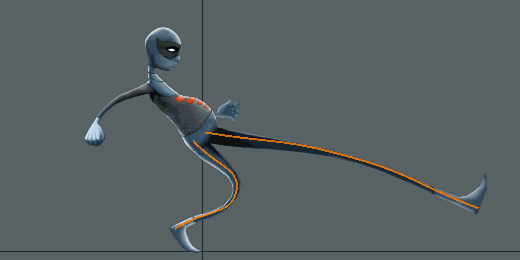 Paths allow you to draw curves (a Bézier spline), then have bones follow the curves. We provide many options and modes that make this very powerful. Bone spacing and position key be keyed, so bones can be animated along the path. Bones can be scaled automatically, making very bendy paths possible. Similar to meshes, paths can be deformed and keyed manually, as well as be weighted to bones. This enables using a few bones to control the path, then having many bones constrained to the path, then a mesh can be weighted to the many bones. This and other setups make for very powerful and easy to use rigging.