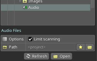 The new audio node works similarly to the images node. All audio files found in the specified path will be listed under the audio node (which is only available in setup mode). Spine currently supports the WAV, MP3, and OGG audio formats.
