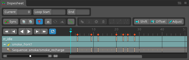 The sequence key sets a looping mode, the frames per second the sequence will play, and the frame at which the sequence should start. Starting at the key, the sequence will play until the end of the animation or the next key for that sequence. You can create complex animations with multiple sequence keys and combinations of looping modes!
