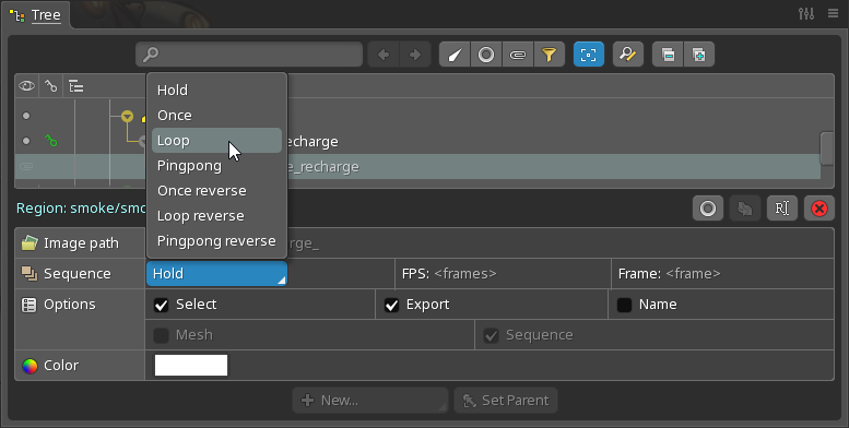 To make this easier, we've introduced "sequences". Instead of creating an attachment for each image, you create a single region or mesh attachment and check the Sequence checkbox.