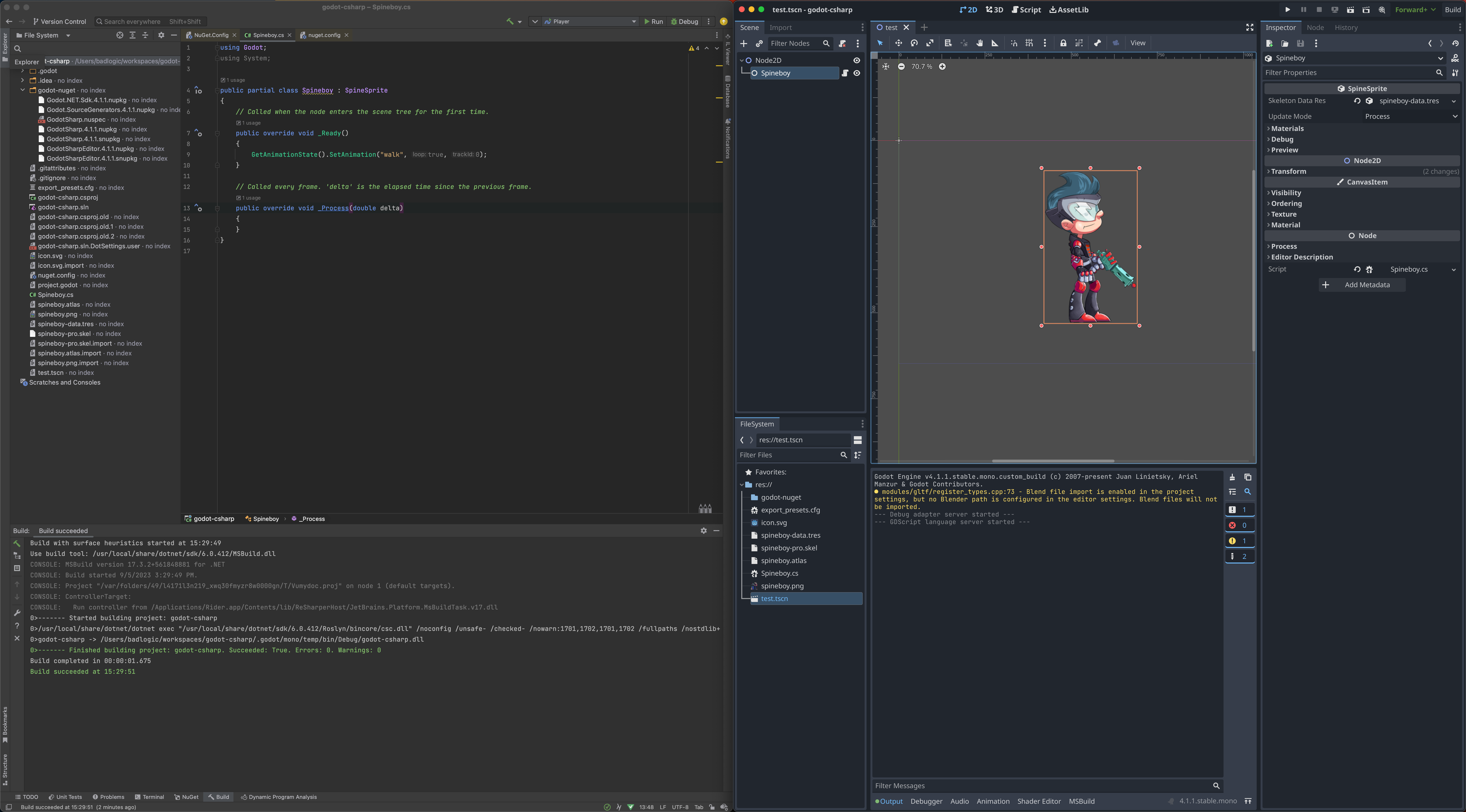 Congratulations! You are now ready to develop your Godot games with Spine and C#!