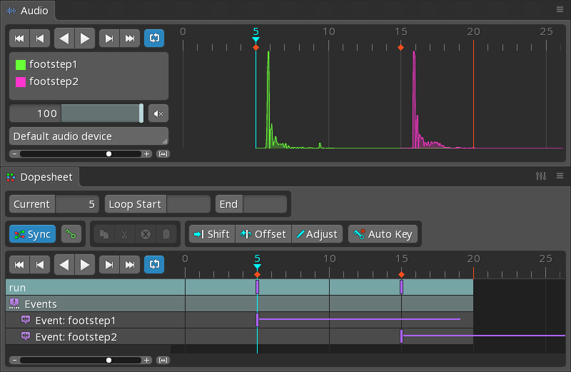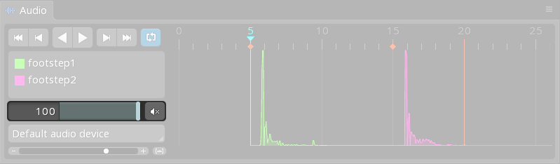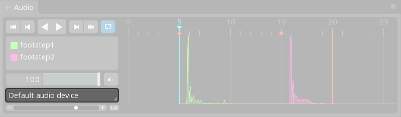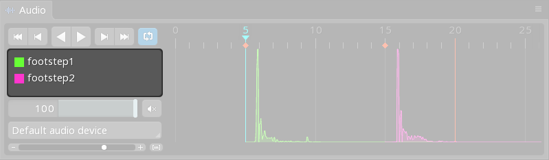 Selecting an audio event key in the list will set the timeline position to that key and dim the other waveforms.