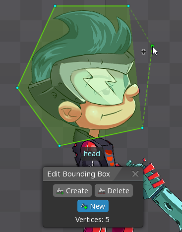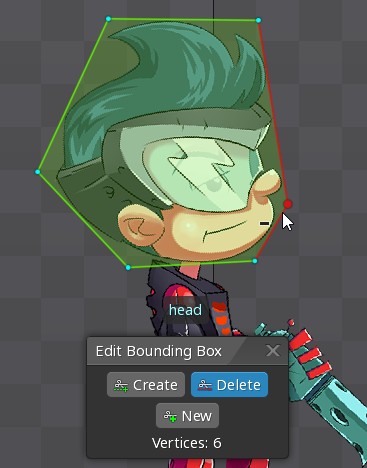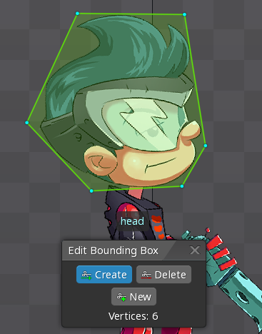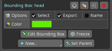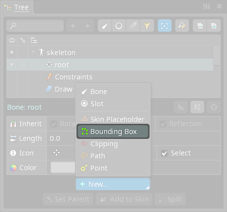 To create a new bounding box, select a bone or slot in the tree, then choose New... Bounding Box in the tree properties.