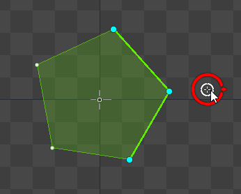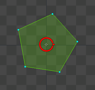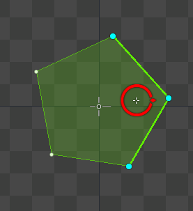 The origin used for rotation or scaling can be changed. Mouse over the small crosshair at the center of the Rotate or Scale tool until a circle appears, then drag the origin to the desired position. The origin will automatically snap to vertices.
