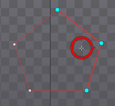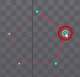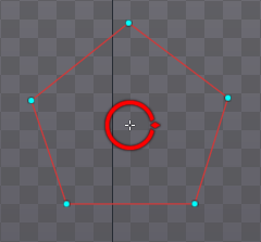 The origin used for rotation or scaling can be changed. Mouse over the small crosshair at the center of the Rotate or Scale tool until a circle appears, then drag the origin to the desired position. The origin will automatically snap to vertices.