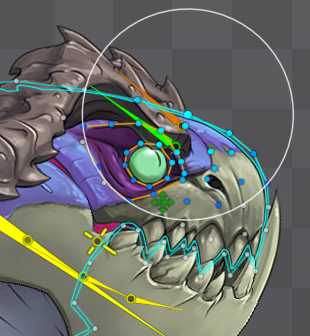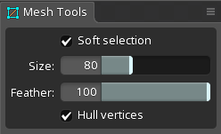 The mesh tools view provides "soft selection" for vertices. When the selected vertices are transformed, other vertices within the soft selection size are also transformed. This can help when manpulating many vertices or to move vertices with a gradual fall-off. It works with mesh, path, bounding box, and clipping attachment vertices.