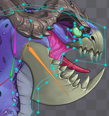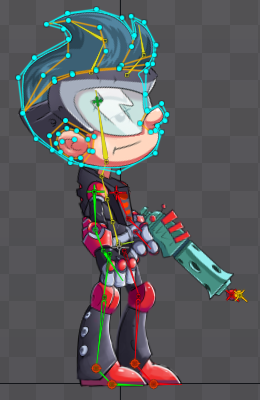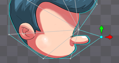 This example shows how to control mesh deformation by adding vertices and edges. We have made the hull for spineboy's head and now want to make the nose stretch.