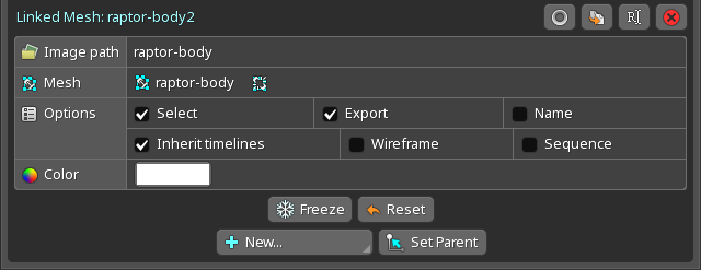 To create a mesh, first create a region attachment, then check Mesh in the region attachment's tree properties.