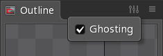 The outline view provides a secondary display of the skeleton pose shown in viewport that is not cluttered with bones, the current selection, or the other UI elements that are shown in the viewport.