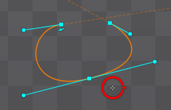 When moving a handle, shift can be held to lock the angle of the handle, so it will only move toward or away from the knot. This can be useful to adjust the curve on only one side of the knot.