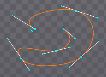 A path attachment is a composite Bézier spline. It is made up of "knots" which are vertices on the path, and "handles" which are vertices that control the curve of the path between knots.