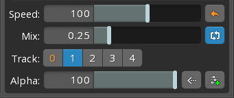 The speed slider sets the speed of animations played on the track. It is equivalent to TrackEntry timeScale at runtime.