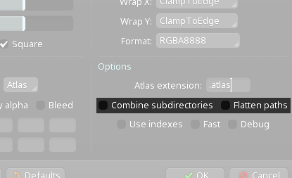 To avoid subfolder paths being used in region names in the atlas file, see the Flatten paths setting.