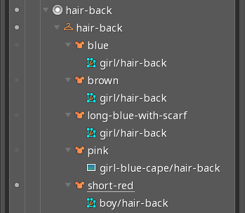 For example, if the skin name is girl and an attachment is named girl/head then the attachment will appear in the tree as ...head when the girl skin is active.