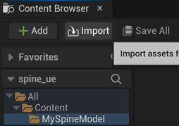 Note: The Unreal Engine Editor sometimes fails to recognize source file changes. In this case, locate your Spine skeleton data or texture atlas asset in the content browser, double click it, then select