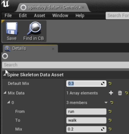 Components using the skeleton data asset, like the skeleton animation component, use these mix times when playing back animations.
