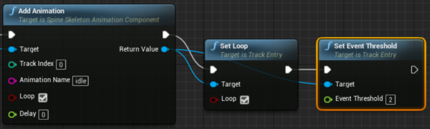 You'll receive a TrackEntry from all the methods/nodes that allows you to further customize the playback of this specific animation, as well as bind to delegates of track entry specific events. See the section Processing AnimationState Events below.