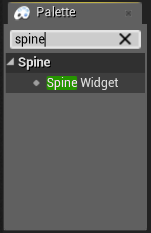 To add a Spine skeleton to your UMG UI, start by creating a new widget blueprint. Open the blueprint, then add a Spine widget to it via the palette.