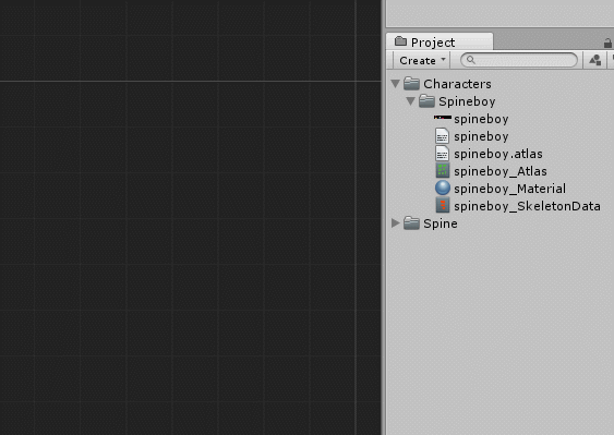 - Drag the _SkeletonData asset into the Scene view or the Hierarchy panel and choose