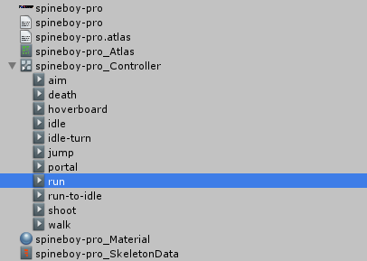 The spine-unity runtime provides you with a set of components that allow to display, animate, follow and modify skeletons exported from Spine. These components reference skeleton data and texture atlas assets you import as described in the Assets section.